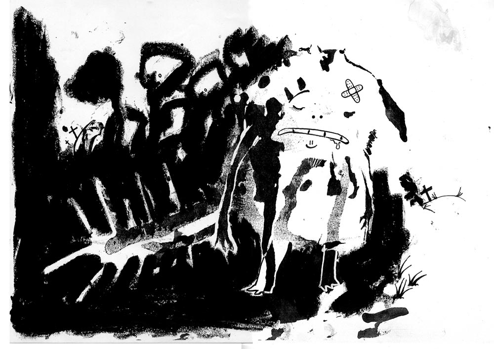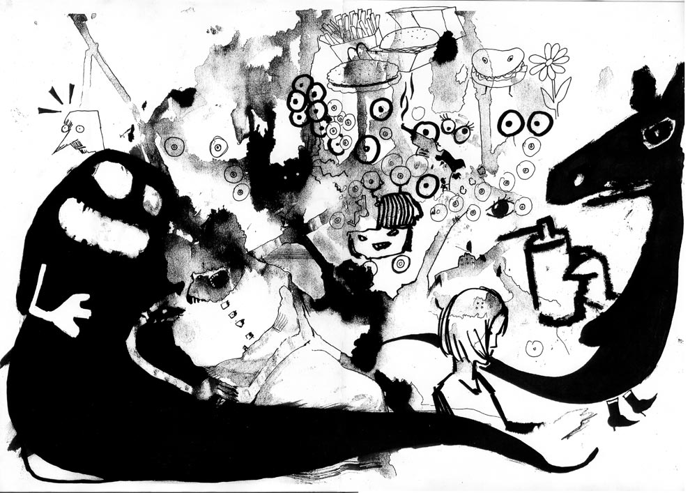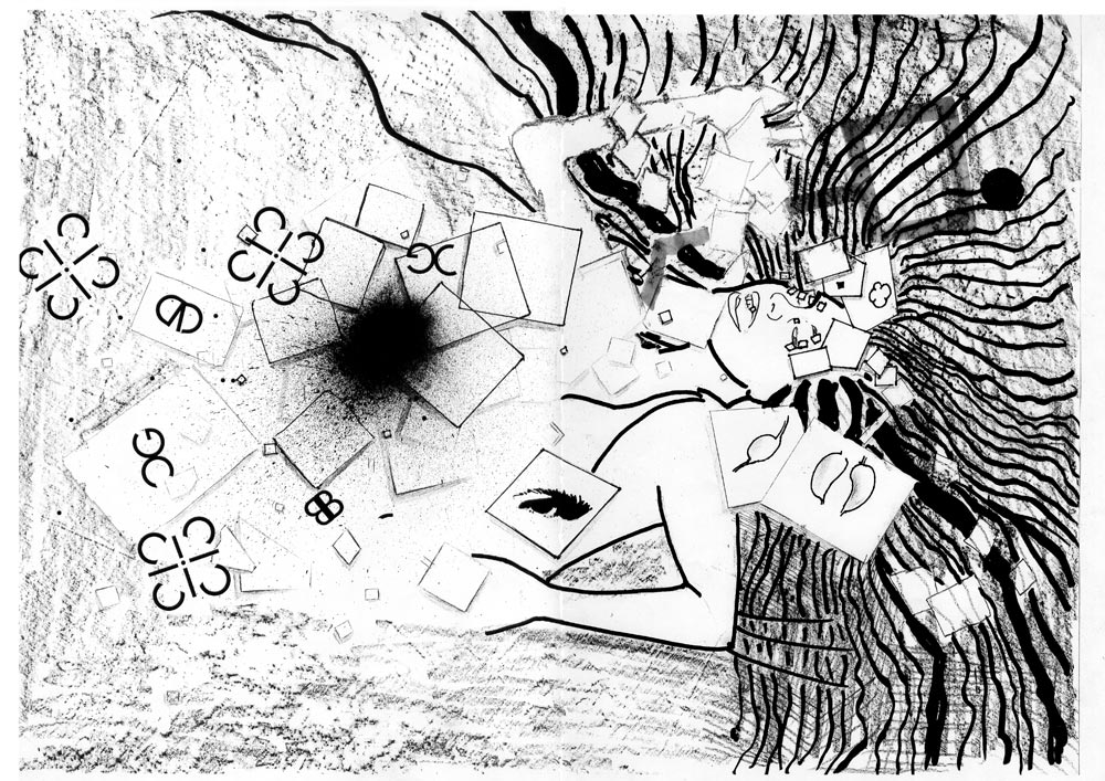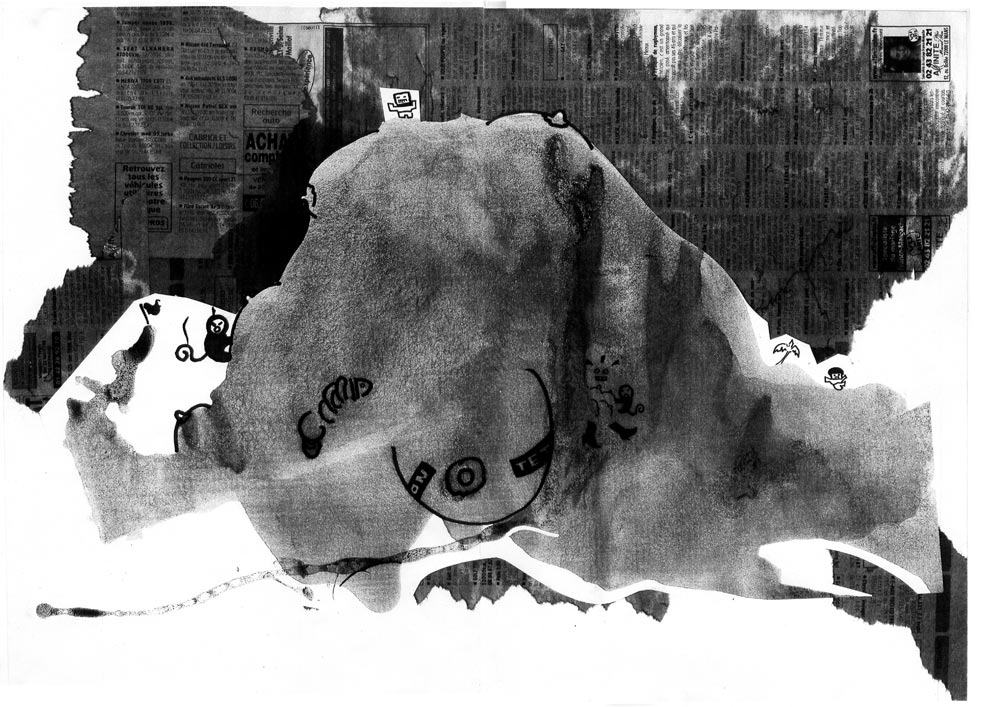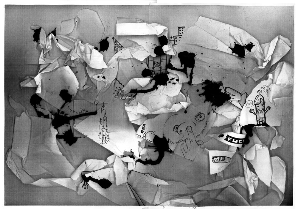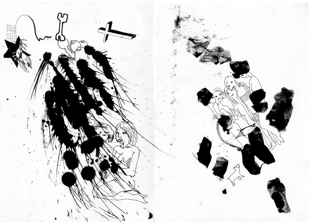 Ces images proviennent d'un workshop (cours intensif) à l'université Paris 8 dont l'objectif était de produire un graphzine en l'espace d'une semaine. C'était un exercice de groupe (2 ou 3 personnes maximum), l'intérêt étant de mixer les compétences, atouts et défauts de chacun.