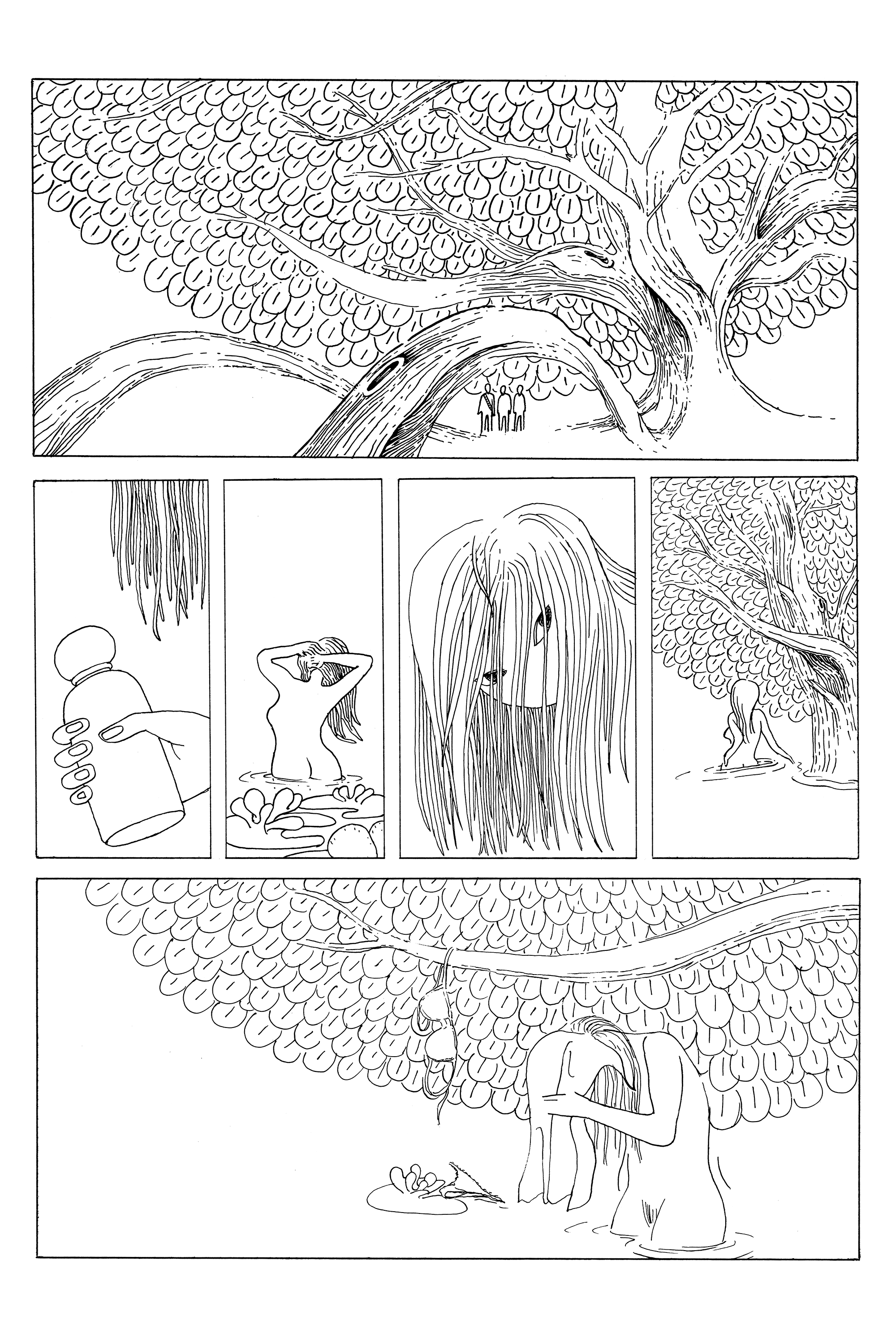 Elle se baignait au loin, à l'abri sous les feuillages